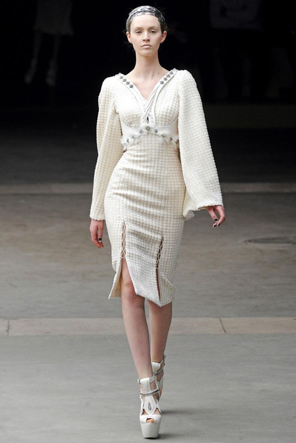 Se não me engano esse é o segundo desfile da grife com a Sarah Burton como diretora criativa da frife após a morte de McQueen. E está claro que Sarah continua implantando seu DNA na grife, dessa vez a coleção de outono trouxe criações em preto e branco, muitos vestidos e um ar de contos de fadas por causa das penas e plumas colocadas em algumas peças. Confira as fotos